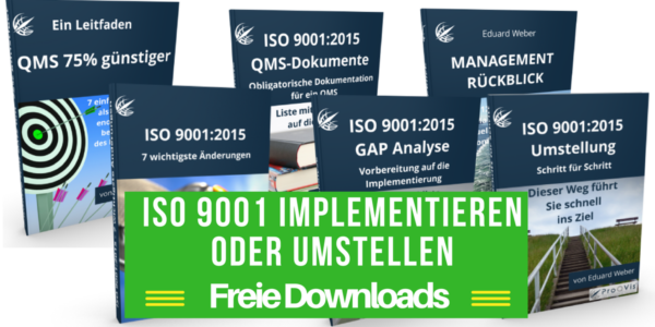 Für eine eventuelle Vorbereitung auf die ISO 9001-Umstellung, habe ich eine Anleitung geschrieben: „ISO 9001:2015-Umstellung Schritt für Schritt“.